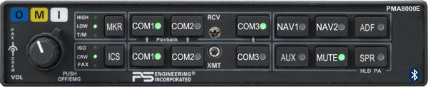 The PMA8000E is specifically designed to be used in a dual audio panel environment; where the pilot and copilot positions have independent control over the radio audio control. The PMA8000E units communicate information between the units to make the operation logical and utilitarian, and avoid operations that are inconsistent with radio and cockpit communications practices.